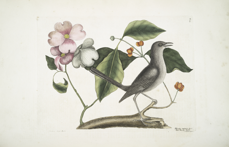 Cornus mas VIrginiana &c., The Dogwood Tree; Turdus minor &c., The Mock-bird.