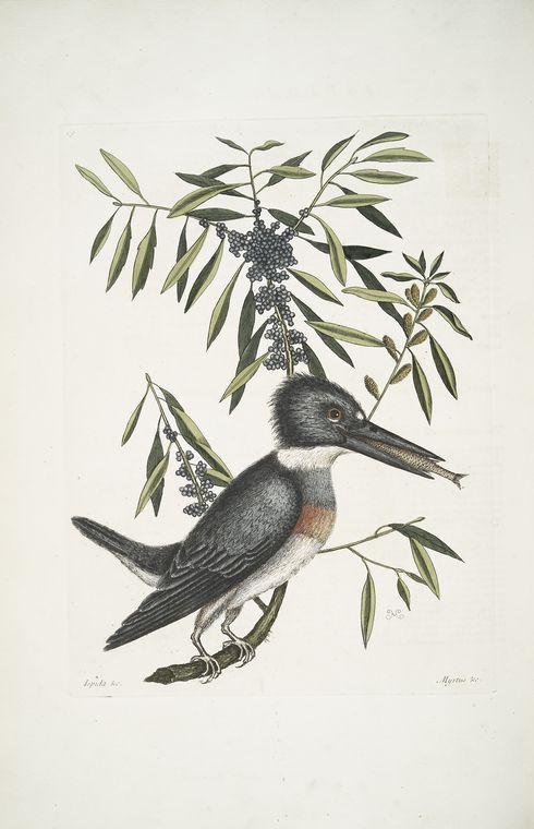 Ispida &c., The King-Fisher; Myrtus &c., The narrow-leaved Candle-berry Myrtle.