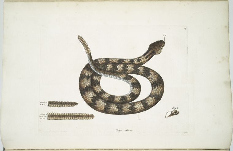 Vipera caudisona, The Rattle-Snake; The Section of a Rattle; A Rattle of Twenty-four joynts; A Tooth.