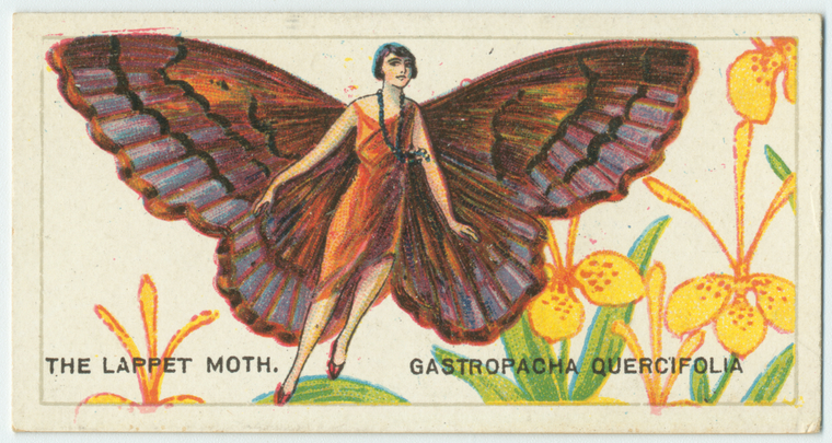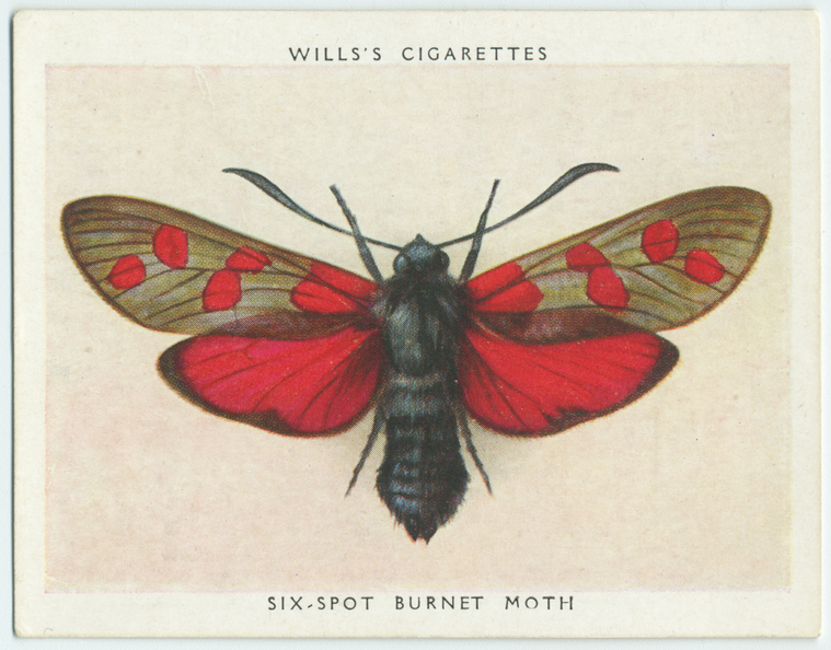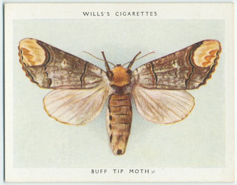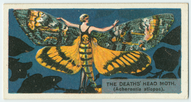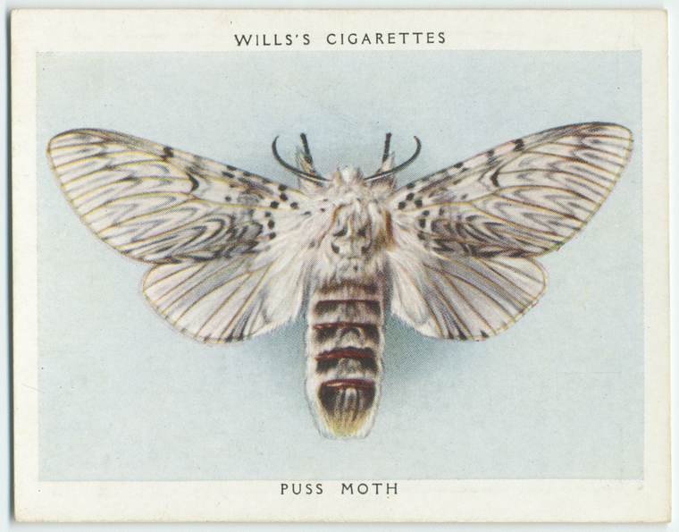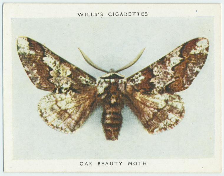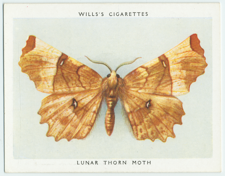 The New York Public Library Digital Collections has a huge collection of cigarette cards. Among those are moths and butterflies. More moths.