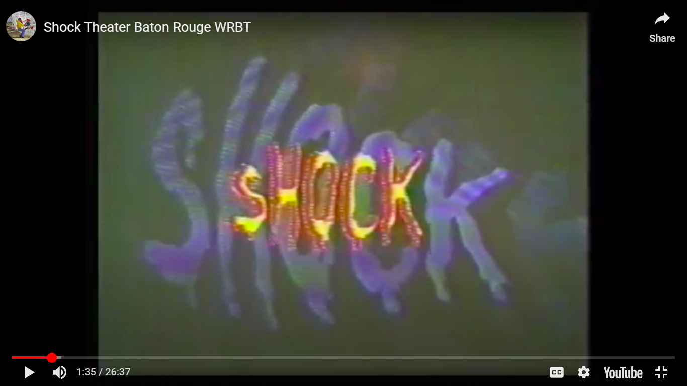 Baton Rouge Louisiana had Shock Theatre with mad scientist Dr Shock reading viewer letters during four breaks in a bad black an white horror film. In 1976 I convinced the star/producer to hire me as a writer. I traveled thirty miles once a week for the shooting at the TV station. I was paid one dollar a week which qualified me for WGA. Did not join because the fees cost more than I would make in several years. The star/producer refused to learn any lines so I wrote a short outline with jokes to guide him through improving the story...