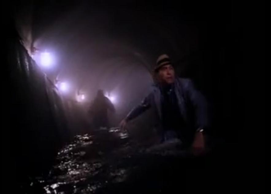 Title on Chicago Theatre marquee as Kolchak drives through downtown