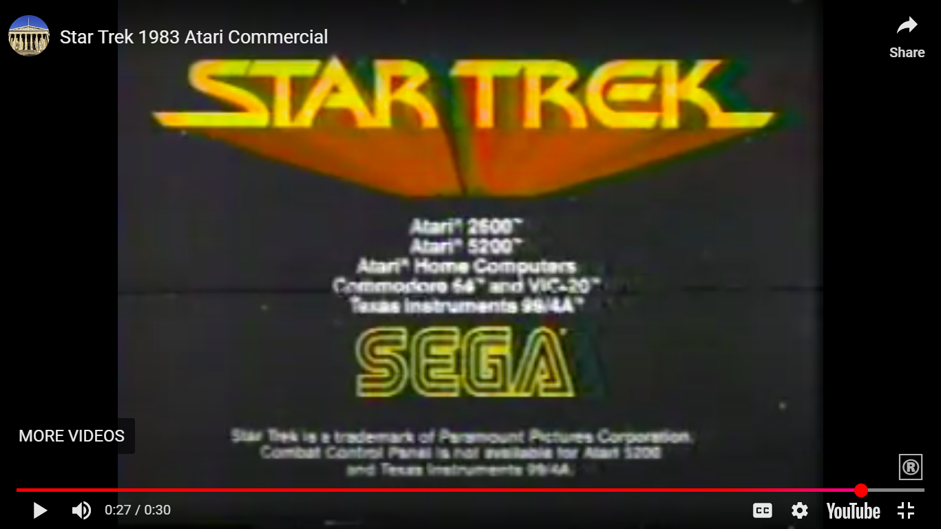 Star Trek 1983 Atari Commercial