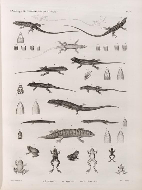 Zoologie. Reptiles. (Supplement). Lézards; Scinques; Grenouilles.