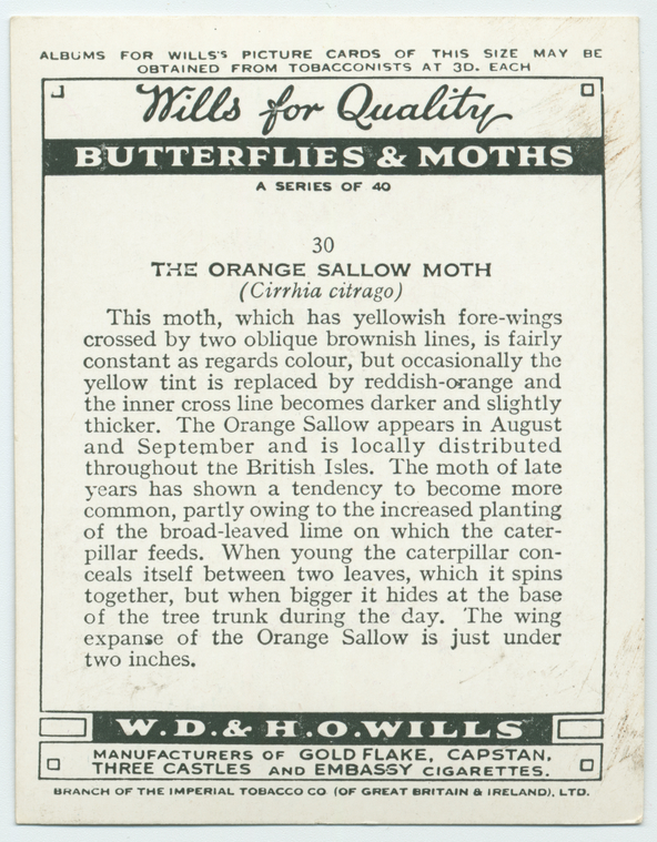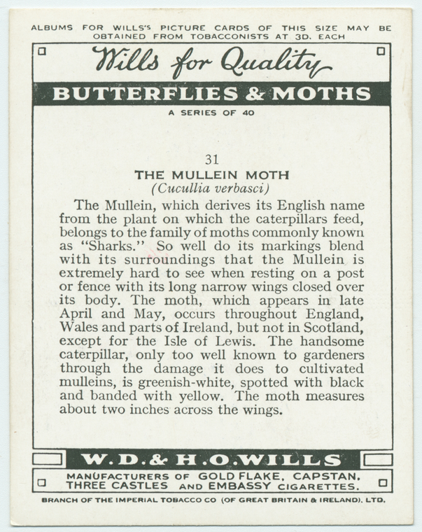 Butterflies and moths : A series of 40 (Wills's Cigarettes)