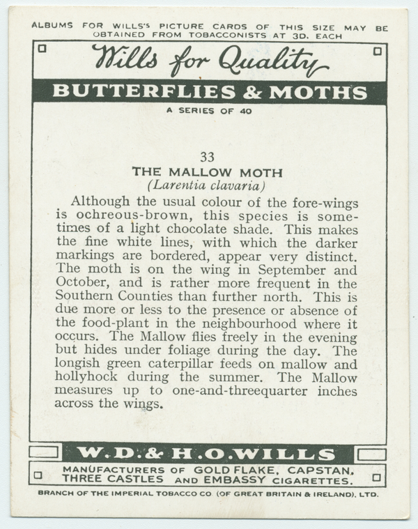 Butterflies and moths : A series of 40 (Wills's Cigarettes)