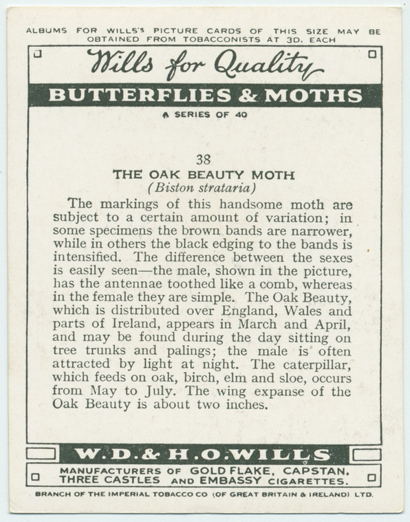 Butterflies and moths : A series of 40 (Wills's Cigarettes)