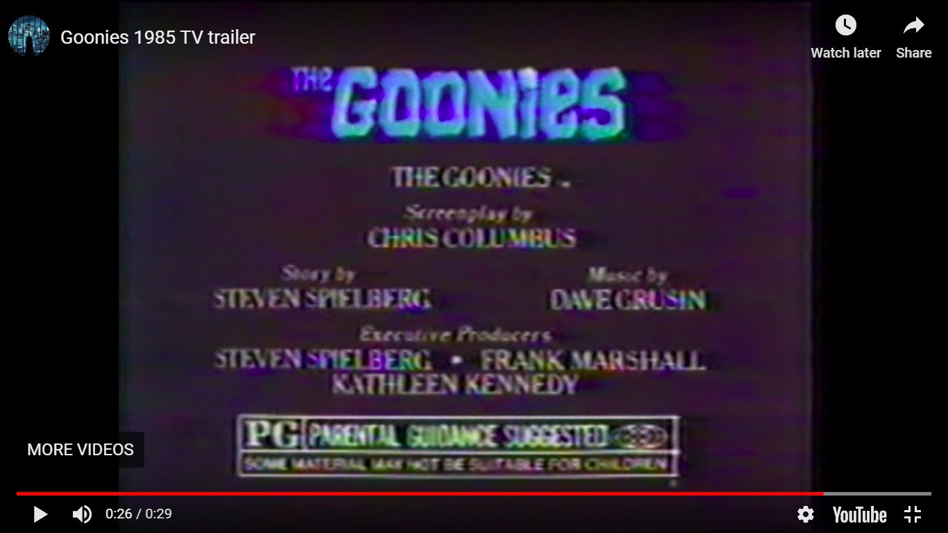 Directed by Richard Donner. Found on Tubi. Josh Brolin, Sean Astin, Jeff Cohen, Kerri Green, Martha Plimpton, Ke Huy Quan, Corey Feldman, Joe Pantoliano, Robert Davi, John Matuszak, Anne Ramsey. I also have this DVD.